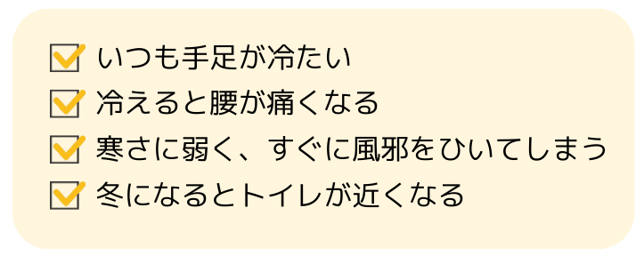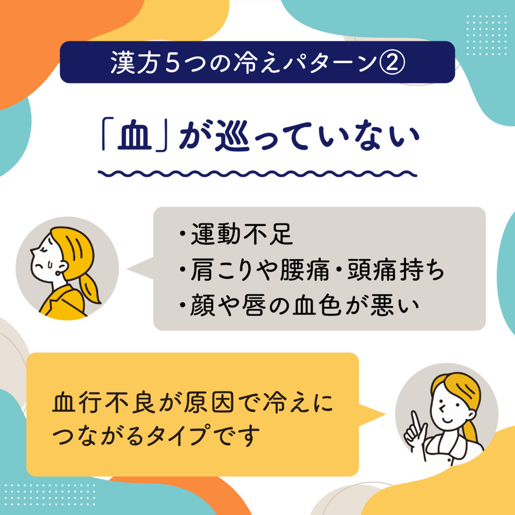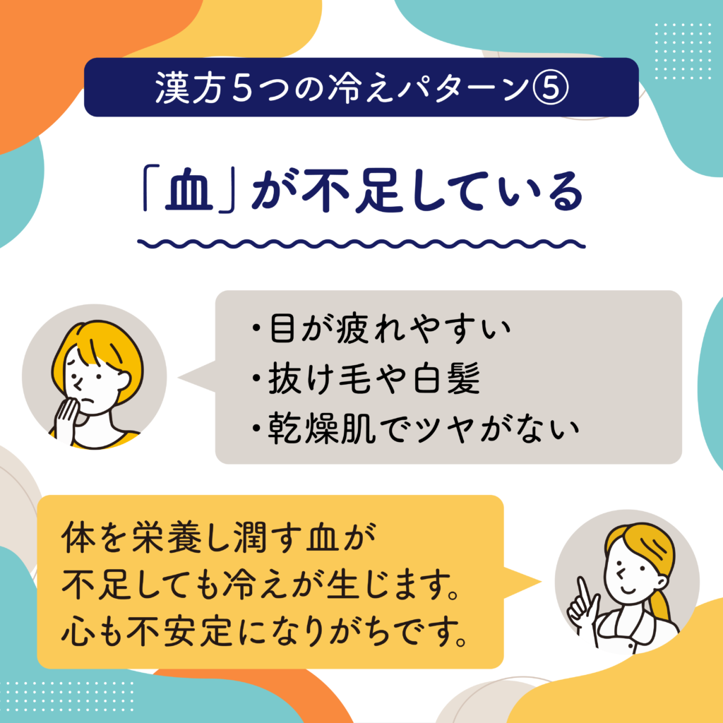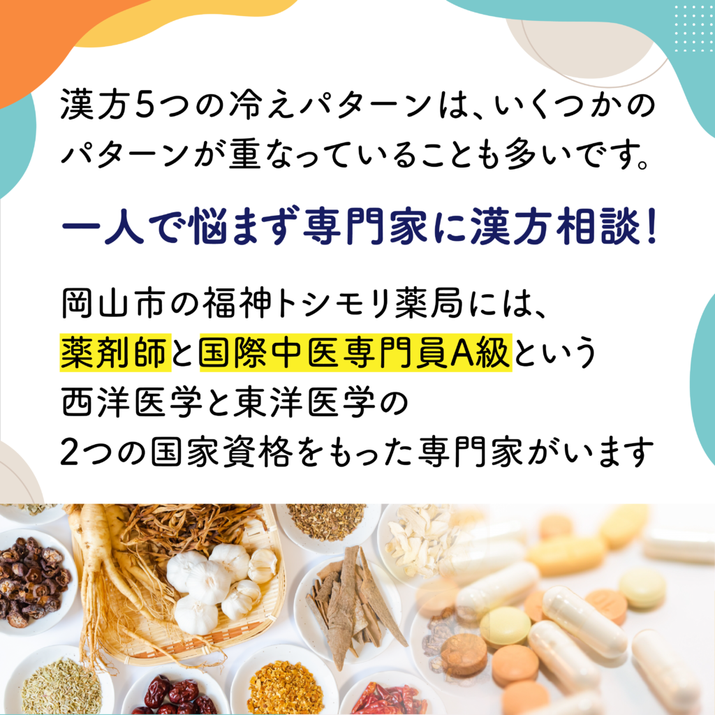 漢方5つの冷えパターンを順番にご説明していきますね。
